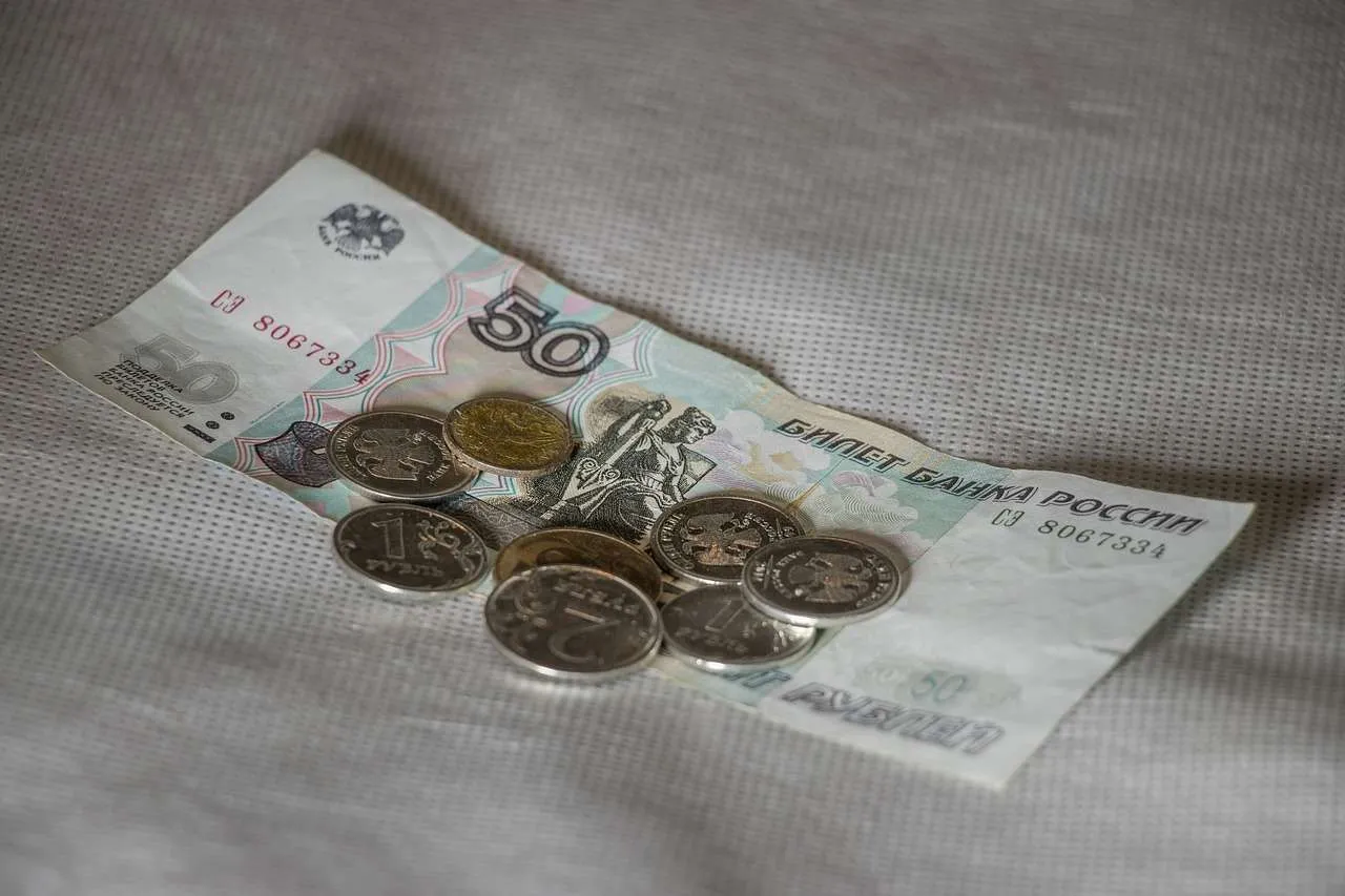 图 1.1.8 钱币 “1”– 金钱增量,砌砖工人在砖墙上放砖。
