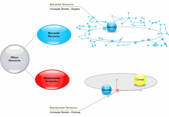 Вот, эту схемы Вы уже видели, она показывает, что Вы в себе несёте потенциал двух личностей: Внутренней и Внешней. Каждая из них имеет развертку судьбы. Помните, я там выше что-то начинала говорить про пятое измерение, вот это из этой темы. Так вот, по развертке (в её упрощённой форме) каждые 12—13 лет у Вас будут распаковываться, материализовываться на жизненном пути некоторые виды Энергий, которые в человеческом мире проявляются как внешние События и Ваши внутренние Состояния. Они будут иметь как положительные, так и отрицательные моменты, и Вы, имея в себе две таких развертки, можете сознательно выбирать более эффективный и желаемый для Вас вариант развития событий.