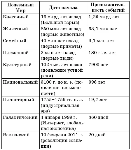 Ускорение времени в соответствии с пробуждением человеческого сознания – общепринятая концепция, как мы увидим в следующих главах, где рассказывается об информационной теории, точках сингулярности и живых системах. Древние мыслители по большей части говорили об осознании и эволюции с точки зрения человеческого потенциала и развития, что мы обсудим в главе 3.