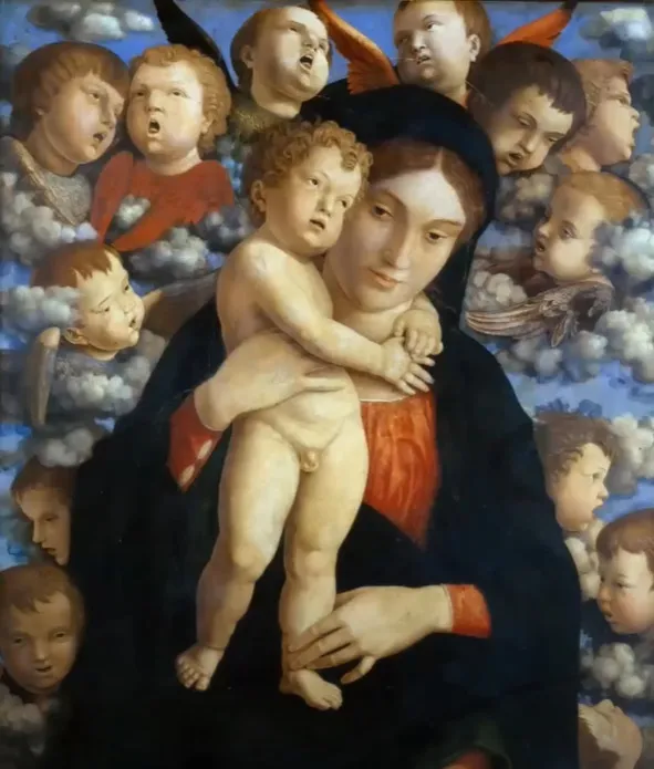 Какое-то время в несколько минут я буду называть части этой картины, и давайте постараемся направить свое внимание на эту часть и увидеть, например, лицо Марии, то есть направить внимание на лицо. Увидеть, постараться осознать ее состояние, но при этом не терять себя смотрящего. То есть наблюдать себя, который смотрит на изображение. Давайте начнем. Посмотрите на губы Марии…, на руки младенца…, на лицо младенца…, на одного из ангелочков вокруг…, на нижнюю руку Марии…, на лицо в левом нижнем углу…, на изображение в целом. И мне хотелось бы попросить вас сейчас поделиться наблюдениями.