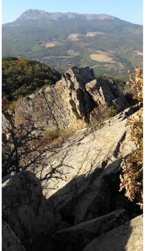 Повсюду разбросаны глыбы этих пород, естественным образом закругленные. Разлом, по которому вытекает вода источника Ай-Йори, фактически сохранил этот горный массив от разрушения, освобождая его во время землетрясений от тектонических напряжений.