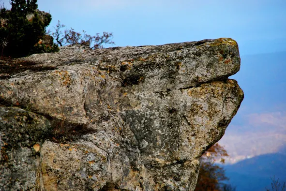 Так вот, в 200 метрах от каменных чашеобразных выемок с прорубленными линиями, пройдя вдоль отвесных скал в сторону северо-востока (а весь хребет Яных-Сырт вытянулся именно в направлении с юго-запада на северо-восток), мы подойдем к скале, издали напоминающей нам какого-то зверя, образ которого одновременно похож отчасти на свинью, отчасти на дракона.