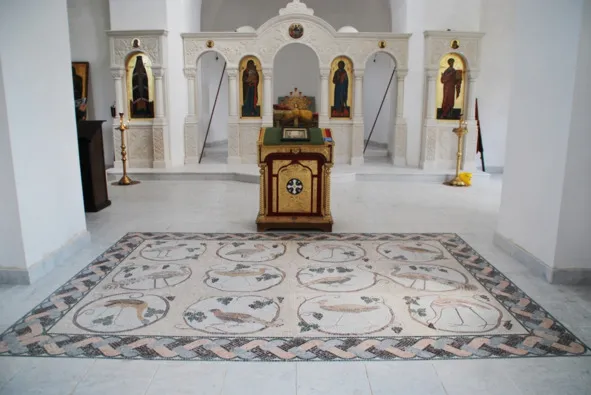 Мозаика пола храма с изображениями 12 птиц