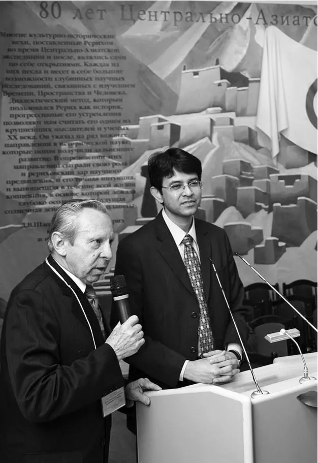 Леонардо Олазабал Амарал (Бильбао, Испания) вручил Л.В.Шапошниковой книгу Н.К.Рериха «Сердце Азии», только что изданную на испанском языке
