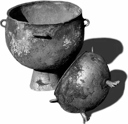 Рис. 4. Сакские жертвенные котлы. Бронза. VI–V вв. до н. э. Найдены на дне озера Иссык-Куль в районе села Жаркымбаево и села Кара-Ой