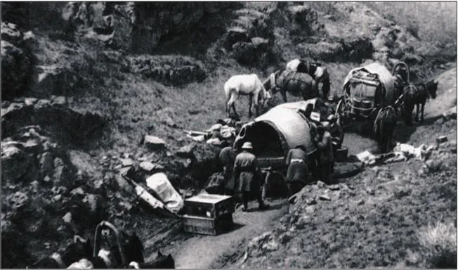 Рис. 5. «Непредвиденная остановка». Экспедиционная фотография, предположительно – переход по Джунгарии через ущелья Джаира, 25 мая 1926 г.