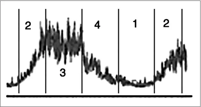Рис. 1. Четыре фазы 11-летнего солнечного цикла активности (по Чижевскому)