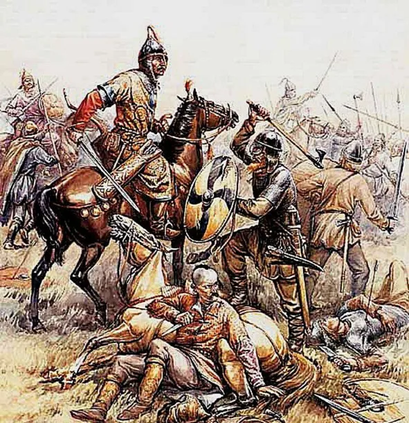 По закону Чингисхана «Яса32», волосы у воина должны быть сбриты, а на макушке оставлена только одна косичка. Высокопоставленным личностям разрешалось носить бороду, а остальные должны были сбривать её, оставляя одни усы. Но ведь этот обычай не татарский, а древних Гетов и Массагетов, т.е народа известного ещё в XIV в. до Р.Х. и наводившего страх на Египет, Сирию и Персию, а потом упоминаемого в VI в. по Р.Х. греческим историком Прокопием33. Массагеты – Великие Саки-Геты, составлявшие в полчищах волжанина Аттилы34 передовую конницу, также брили голову и бороду, оставляя только одну косичку и усы. Существовал этот обычай и у дунайских болгар. Русский великий князь Святослав35 также брил бороду и голову, оставляя один чуб, т.е. продолжал следовать обычаям Гетов и черкасского казачества, составлявшие в его войске передовую конницу. Это были беловежцы – Аз-Саки или казаки.