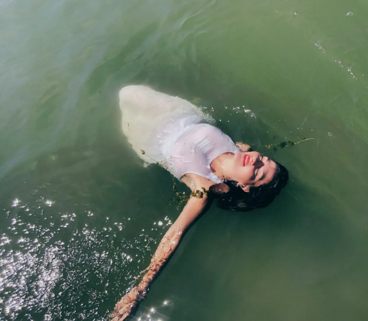 В ладу с собой я ушла в водоём. Любо нежиться в плотной воде, прозрачной и искрящейся на солнце, мягко укутываться в волосы тины, восхищаться художественной картинностью подводного мира, уняв полипноэ сменить мелодику своей жизни. Время перестаёт отзываться, время меняет такт, взгляд превращается в зырк, и я приметила в глубине россыпь камней самых удивительных оттенков, серые пучеглазые рыбы ласкали мне живот и ноги. Поворот головы в сторону солнца подарил мне объятия собственных волос, я здешняя, упоительная мягкость и торжество водоёма облили меня радостью, я стала кружиться, сворачиваться калачиком и летать на водных дюнах, то уходя глубже любоваться сокровищами, цветами и рыбами, то подниматься к зеркалу воды, там где солнце.