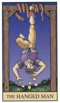 Перевернутый Повешенный означает чрезмерную погруженность в свои дела, а также бесполезную погоню за недостижимой мечтой, эгоистичность. На данный момент нет решения вопроса. Напрасные жертвы и метания.