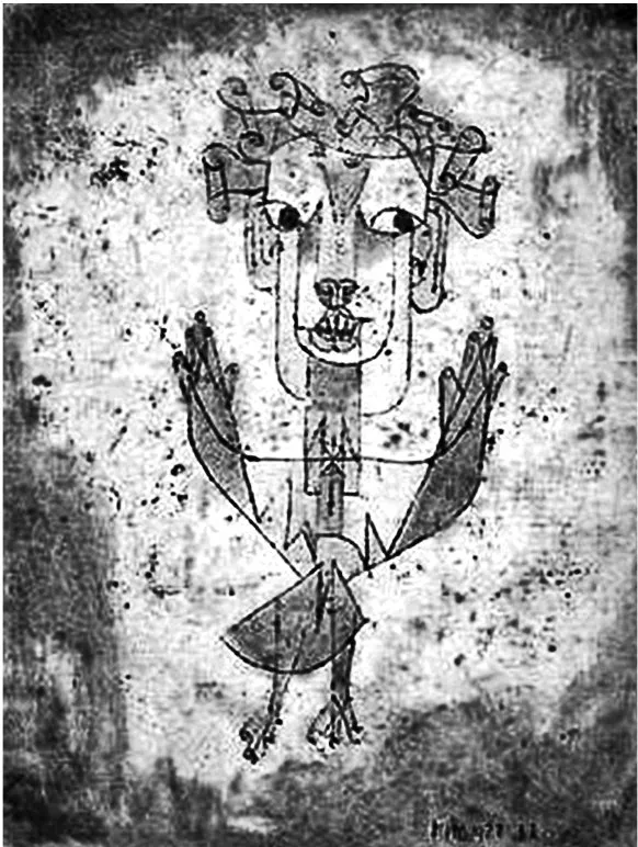 «Angelus Novus». Рисунок Пауля Клее. Вальтер Беньямин приобрел этот рисунок в 1921 году и хранил до самой смерти. Беньямин отождествлял идею «Angelus Novus» с «ангелом истории» – взглядом на исторический процесс как на непрекращающийся цикл отчаяния