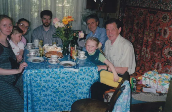 Папа с дядей Эдиком у нас в гостях в Солнцево вместе с хозяйкой квартиры Здановской Галиной Георгиевной, 2001г