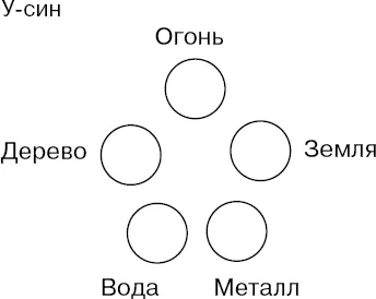 Извините, что заранее нагнал страха, но все не так страшно, как может показаться. Трудно поверить, но связи между первоэлементами, отраженные в схеме У-син, гораздо проще и нагляднее. Для удобства изобразим все элементы в виде пентаграммы – правильного пятиугольника.