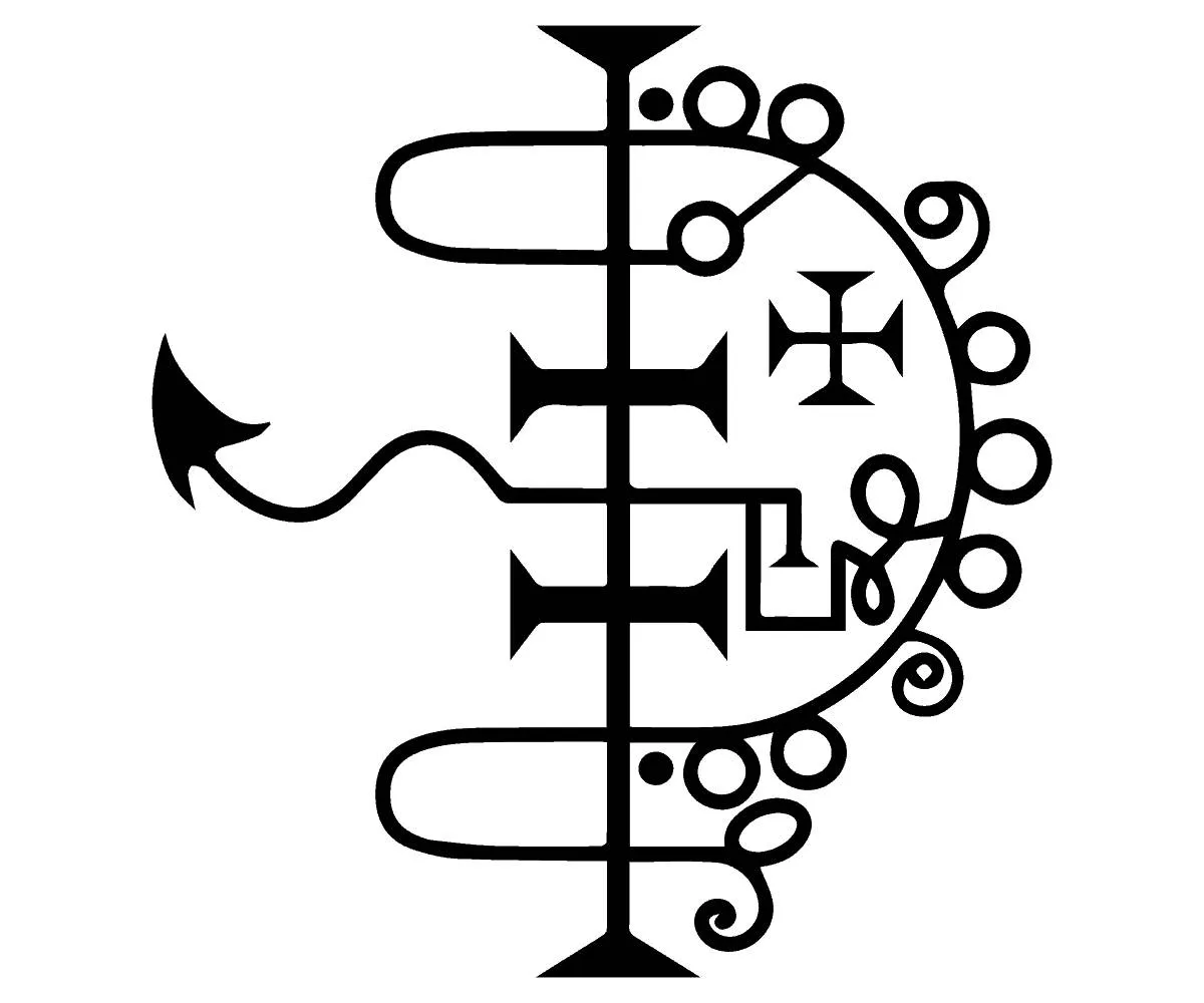 Если Заклинатель вздумает призвать его, то пусть совершает это вне дома и пусть в продолжение своей операции стоит на ногах, сняв свою шапку, ибо если та будет надета, то Асмодей обманет его и предаст его занятия огласке. Увидев же Асмодея в вышеозначенном облике, пусть Заклинатель тотчас же назовет его по имени, промолвив: «Ты – Асмодей!» – и тот не станет этого отрицать и вскоре склонится до земли. Он дарует перстень добродетелей (наделяет магической силой перстни, изготовленные под влиянием зодиакальных знаков и несущие на себе их изображение), он обучает искусствам арифметики, астрономии, геометрии и всем ремеслам без исключения. Он даст правдивые и полные ответы на твои вопросы. Он делает человека невидимым. Он показывает место, где зарыт клад, и охраняет его. Среди легионов Амаймона он властвует над 72 легионами низших духов. Вот его печать, которую тебе надлежит носить как Ламен на груди.