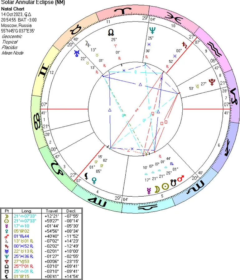 Солнечное затмение 14 октября 2023–21°07 Весов