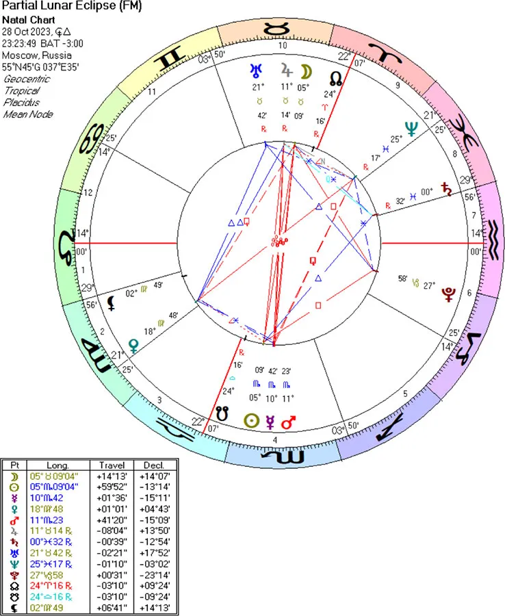 Лунное затмение 28 октября 2023–5°09 Тельца