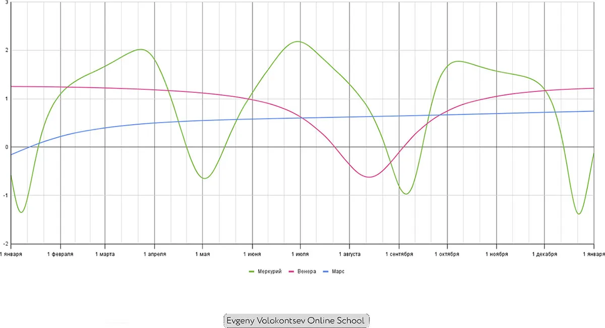 График скорости Меркурия, Венеры, Марса в 2023 году (в градусах)