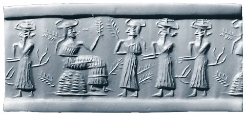 Поклонение богу Мардуку. Оттиск печати. Месопотамия, ок. 2350–2150 гг. до н. э.