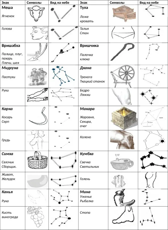 – Тула (Весы) – Талия и Ложе, кровать. Форма созвездия очень напоминает изголовье кровати. Супружеское ложе символизирует партнерские семейные отношения. Также созвездие напоминает изящный стройный женский стан.