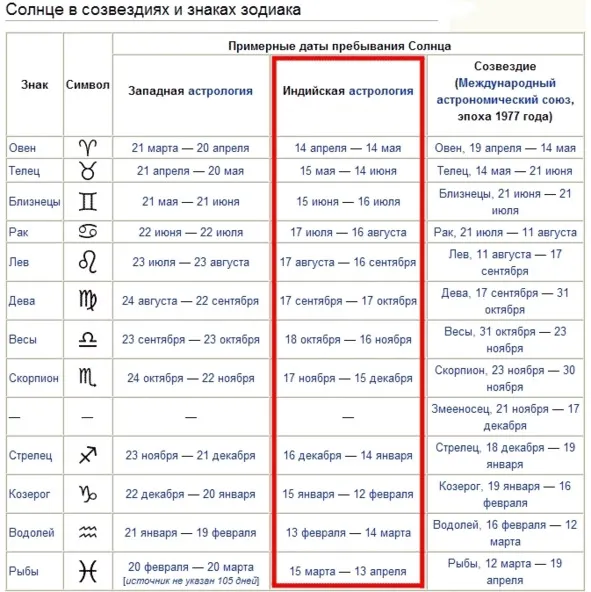 Заметно явное несовпадение между периодами астрологических знаков из-за земной прецессии – аянамшы. Также стоит обратить внимание на периоды прохождения Солнца через астрономические созвездия в этой таблице. Солнце проходит через них не ровно за 30 дней, как следует из астрологических канонов, а за совершенно разные промежутки времени: от 20 до 40 дней. Для удобства расчетов астрологи разделили зодиакальный круг на 12 равных частей. Однако это упрощение и удобство привело к снижению точности расчетов. Этот момент будет более подробно рассмотрен в главе «Частые астрологические ошибки».