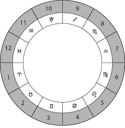На рисунке 2.1 внутри изображен зодиак, а снаружи – круг астрологических домов.