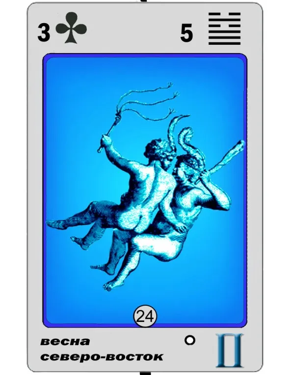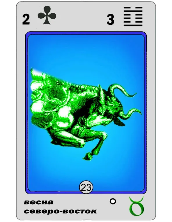 23. Двойка. Ваши хорошо продуманные планы, потребуют однозначного выбора между счастьем и успехом. Если рядом находится неблагоприятная Карта, Двойка Жезлов – может означать смерть близкого человека. В перевернутой позиции предрекает, что ваш выбор является неудачным. В сочетании с Дьяволом предрекает потрясение, несчастье, с перевернутой Десяткой Пентаклей – предостерегает вас от вовлечения в азартную игру, а расположение данной Карты возле Туза и Тройки Кубков – предсказывает, что вас ожидает приятная неожиданность.