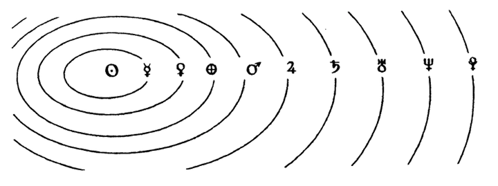 Если вообразить себе эти небесные светила вращающимися вокруг солнца, а себя стоящим внутри солнца, то. движение их будет казаться почти однообразным и всегда в одном направлении. Если бы движение планет было. круговое и солнце находилось бы в центре этого круга, то движение было бы постоянным, т. е. в одном направлении и с одинаковой скоростью.