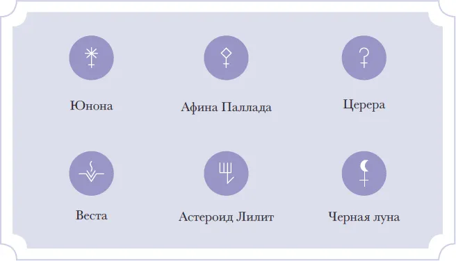 Ниже представлено несколько символов для установления связей с расположением астероидов.