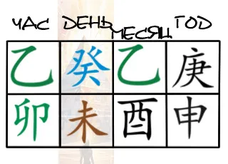 Два 乙 сливаются с 庚 и разделены 癸. Значит, будет отсутствовать борьба и ревность, и не будет остальных недостатков. Это успешная и богатая судьба. Высокопоставленный чиновник уводит в слияние Ша. Остается чиновник, и трансформация Ци помогает чиновнику, изготавливается Печать расходующая Дух наслаждения, однако не уменьшает счастья и удачи.