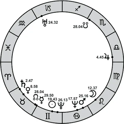 Рис. 1.6. Расположение планет в зодиаке в момент рождения Жака Ива Кусто