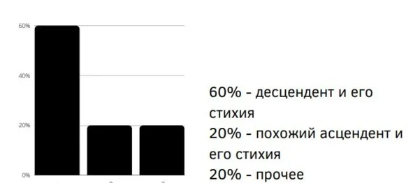 60% – десцендент и его стихия (похожи по характеристике или по знакам зодиака);