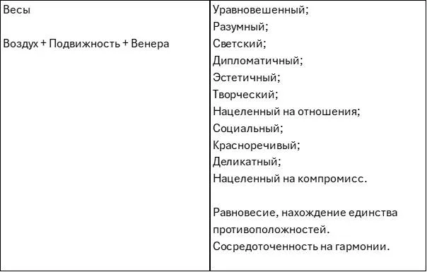 Ключевые качества знаков складываются из качеств стихии, типа активности и качеств управителя знака.