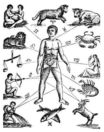 Зодиак – это тело Космического Человека. Каждая часть его тела соотносится с тем или иным знаком зодиака. Кстати, слово “зодиак” в переводе с греческого означает “живое существо”.