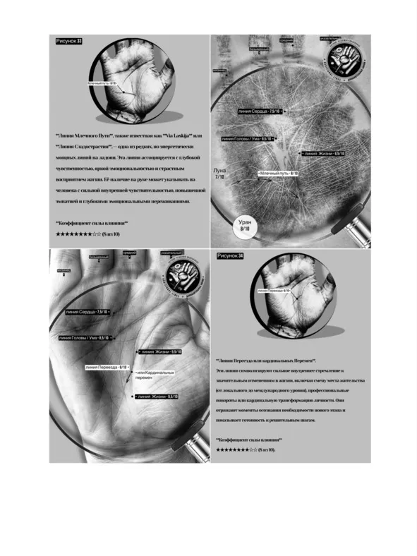 Эти линии, также известные как линии жизненных трансформаций, относятся к важнейшим маркерам на ладони, указывающим на серьёзное стремление человека к переменам. Эти линии отражают моменты, когда внутренний импульс к обновлению становится настолько сильным, что человек решается на радикальные изменения в своей судьбе, включая смену места жительства (от локального до международного уровня).