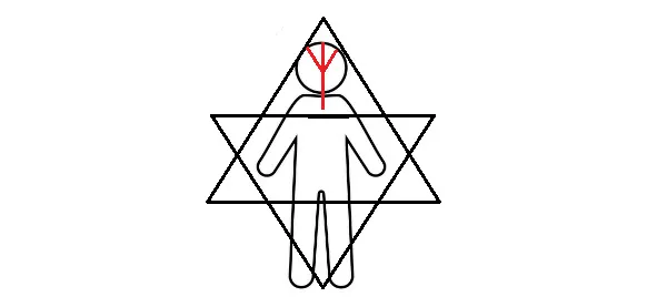 Затем мы Альгиз поднимаем и переносим в верхний маленький треугольник, тогда он окажется на уровне головы (рис.23).