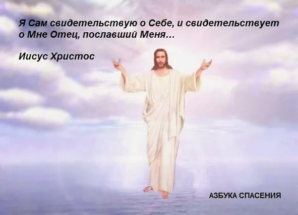 Вы судите по плоти, Я не сужу никого. А если и сужу Я, то суд Мой истинен, потому что Я не один, но Я и Отец, пославший Меня. А и в законе вашем написано, что двух человек свидетельство истинно. Я Сам свидетельствую о Себе, и свидетельствует о Мне Отец, пославший Меня. Иисус Христос (Спаситель)