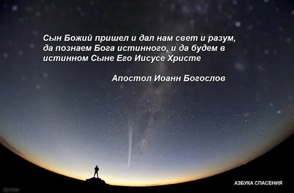 Знаем также, что Сын Божий пришел и дал нам свет и разум, да познаем Бога истинного и да будем в истинном Сыне Его Иисусе Христе. Сей есть истинный Бог и жизнь вечная. Дети! храните себя от идолов (1Ин.5:18—21).