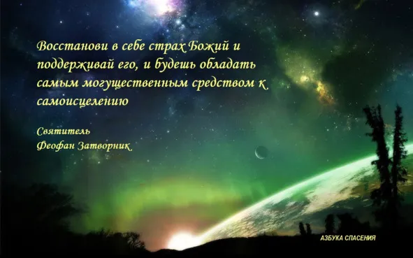 Страх Господень ненавидит неправды (Притч.8:13), а если ненавидит, то прогонит их, если прогонит, то душа станет чиста от них и явится посему правою пред Господом. А это и есть все, чего теперь с такою заботою ищем. Стало быть, восстанови в себе страх Божий и поддерживай его, и будешь обладать самым могущественным средством к самоисцелению. Страх Господен не допустит тебя согрешить, и он же заставит тебя делать всякое добро при всяком к тому случае. И будет у тебя исполняться заповедь: уклоняйся от зла и делай добро (Пс.33:15), которую дает пророк ищущим истинной жизни. Как дойти до страха Божия? Ищи и обрящешь. Здесь нельзя сказать: то и то сделай; страх Божий есть духовное чувство, сокровенно зачинающееся в сердце от его обращения к Богу. Размышление помогает, помогает и напряжение себя на это чувство; но делом оно дается от Господа. Взыщи его как дара, и дан тебе будет. И когда дан будет, тогда только слушайся его беспрекословно: он выправит все твои неправды.