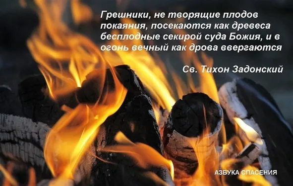 Видишь, куда грешники, не творящие плодов покаяния, определяются: посекаются, как древеса бесплодные, секирой суда Божия и в огонь вечный, как дрова, ввергаются.