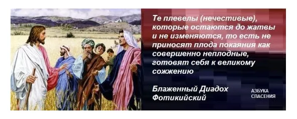 Хочешь ли, мы пойдем, выберем их? – плевелы (Мф.13:28), – говорят ангельские силы, желающие всегда преданно служить Божией воле, потому что видят и нашу леность и великое Божие долготерпение. Но им воспрещается сделать это, чтобы вместе с плевелами они не выдернули пшеницу, не похитили грешника, подающего надежду на исправление, и вместе с родителями, которые сделались порочными, не были истреблены невинные дети – даже те, которые находятся еще в отеческих чреслах, но уже предстоят Богу, видящему сокровенное.