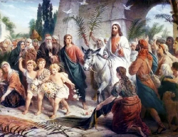 Множество народа, пришедшего на праздник, услышав, что Иисус идет в Иерусалим, взяли пальмовые ветви, вышли навстречу Ему и восклицали: осанна! благословен грядущий во имя Господне, Царь Израилев! Апостол Иоанн Богослов