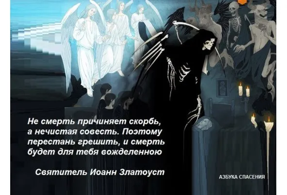 Не смерть причиняет скорбь, а нечистая совесть. Поэтому перестань грешить, и смерть будет для тебя вожделенною.