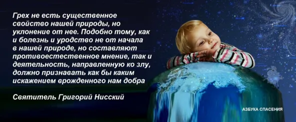 Грех не есть существенное свойство нашей природы, но уклонение от нее. Подобно тому, как и болезнь и уродство не от начала в нашей природе, но составляют противоестественное мнение, так и деятельность, направленную ко злу, должно признавать как бы каким искажением врожденного нам добра.
