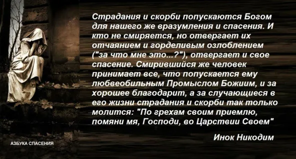 Позволь спросить тебя, возлюбленный брат христианин, оглашающий весьма часто небо и землю своими скорбными жалобами. Скажи мне: что тебя столько оскорбляет – воля ли, умысел оскорбителя, или только его власть, возможность осуществить умысел, или, и то, и другое? Ты отвечаешь: «Меня оскорбляет и то, и другое вместе». В ответ на это скажу тебе, что ни воля злонамеренная, ни приведение оной в исполнение (власть) не могут нанести тебе оскорбление: злое намерение (воля) без власти ничтожно, и никакого вреда тебе не делает, а приведение намерения в исполнение зависит от попущения, т.е. от воли Божией, которая справедлива и свята. Тебе известно, что всякая власть от Бога (Рим.13:1), – зачем же ты печалишься и жалуешься на оскорбителя за то, что он сделал тебе не другое что, как только попущенное ему Богом? Иначе, без Божия попущения, он не мог бы тебя оскорбить.