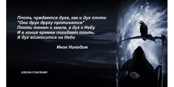 То, что в ветхом человеке, рождающемся в падшем мире, дух противится плоти, а плоть духу, хорошо известно каждому. Еще блаженный Павел, раб Христов и великий церковный учитель засвидетельствовал это в своем послании к Римлянам: