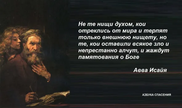 Худое стяжание – сребролюбие, поэтому погубим его, худой запас – злопамятство, поэтому отбросим его, пагубное приобретение – невоздержное похотение, им-то более, нежели чем другим обнищаем, чтобы такою нищетою приобрести себе Царство: ибо блажени нищии духом (Мф.5:3), т.е. обедневшие таким богатством.