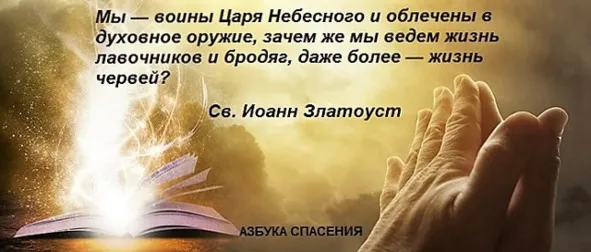 Приходи в церковь не на целый день, а на короткое время, получи духовные наставления, чтобы тебе не получить ран не с тем, чтобы укорять других, но, чтобы обратить и торжище в церковь. Приди, получи оружие, чтобы тебе с оружием не получить смертельной раны. Стань в строю, только вооруженный, стань на святом месте, только с чистыми очами, войди в пристань, только со тщанием управляя кораблем. Этому ты можешь научиться здесь, но ты не хочешь этого, а выходишь в строй мирской, не облекаясь в оружие заповедей Божиих. Размысли, сколько великое дело – выйти из церкви, научившись пренебрегать все человеческое, попирать ногами скорби и становится выше удовольствий, не превозноситься последними и не изнуряться первыми.