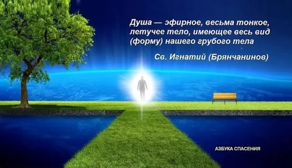 Душа – эфирное, весьма тонкое, летучее тело, имеющее весь вид нашего грубого тела, все его члены, даже волосы, его характер лица, словом, полное сходство с ним. Она имеет свой вид, который подобен виду человека в его теле, т. е. душа имеет и главу, и перси, и руки, и ноги, и очи, и уши, словом, все члены, как и тело; душа облечена в тело, как в одежду, а члены ее облечены в соответствующие члены тела.