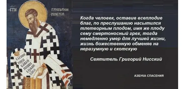 Когда человек, оставив всеплодие благ, по преслушанию насытился тлетворным плодом, имя же плоду сему смертоносный грех, тогда немедленно умер для лучшей жизни, жизнь божественную обменяв на неразумную и скотскую. И поелику единожды примесилась к естеству смерть, то мертвость вошла и в рождающихся по преемству. От сего и нас прияла в себя мертвенная жизнь, так как самая жизнь наша, некоторым образом, умерла.