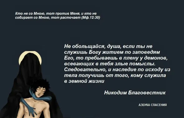 Душа грехолюбивая, как стеною будучи ограждена и окружена духами злобы, связуется узами мрака… Преподобный Филофей Синайский